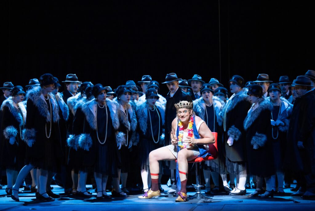 Die Handlung ist im Paris des 17. Jahrhunderts angesiedelt, bei der Inszenierung von Guy Joosten, die 2019 bereits in Antwerpen zu sehen war und nun am Aalto-Theater in Essen herauskam, spielt das Stück in den 20er-Jahren, was man allerdings nur an der Kleidung erkennen kann, in der das Volk, der Kavalier, die Dame, der Offizier, die Tochter und der Goldhändler auftreten, der als chassidischer Jude erkennbar ist, womit Guy Joosten an die Diamantenstadt Antwerpen anspielt, in der es eine große jüdische Gemeinde gibt.