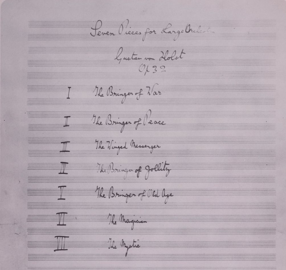 autographe Titelseite von "The Planets" von Gustav von (sic!) Holst; der Titel "Planeten" taucht hier noch nicht auf!
